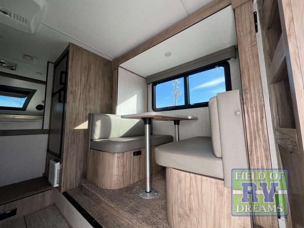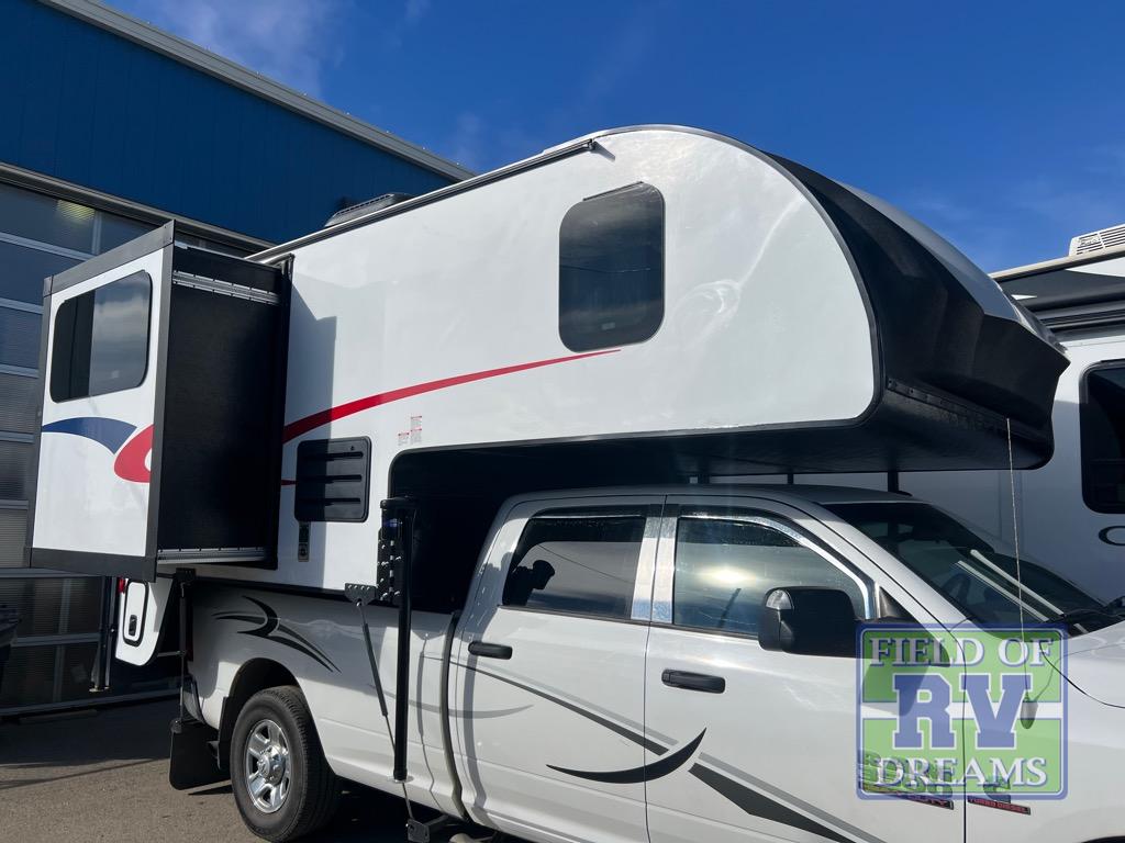 You will love all of the extra space provided in this hard side truck camper with the 42" x 62" booth dinette slide! If you're not needing the additional sleeping space provided by the dinette, choose the optional theater seating! Prepare your best meals with the three burner cooktop, store your canned goods in the wardrobe/pantry, and and leftovers in the two way 6 cu. ft. refrigerator, plus there is a microwave to pop a bag of popcorn at night. After a fun day of fishing, freshen up in the wet bath and relax on the front queen bed with a wrap around night stand, chests on either side, and entertainment center, and a closet for your clothes!
