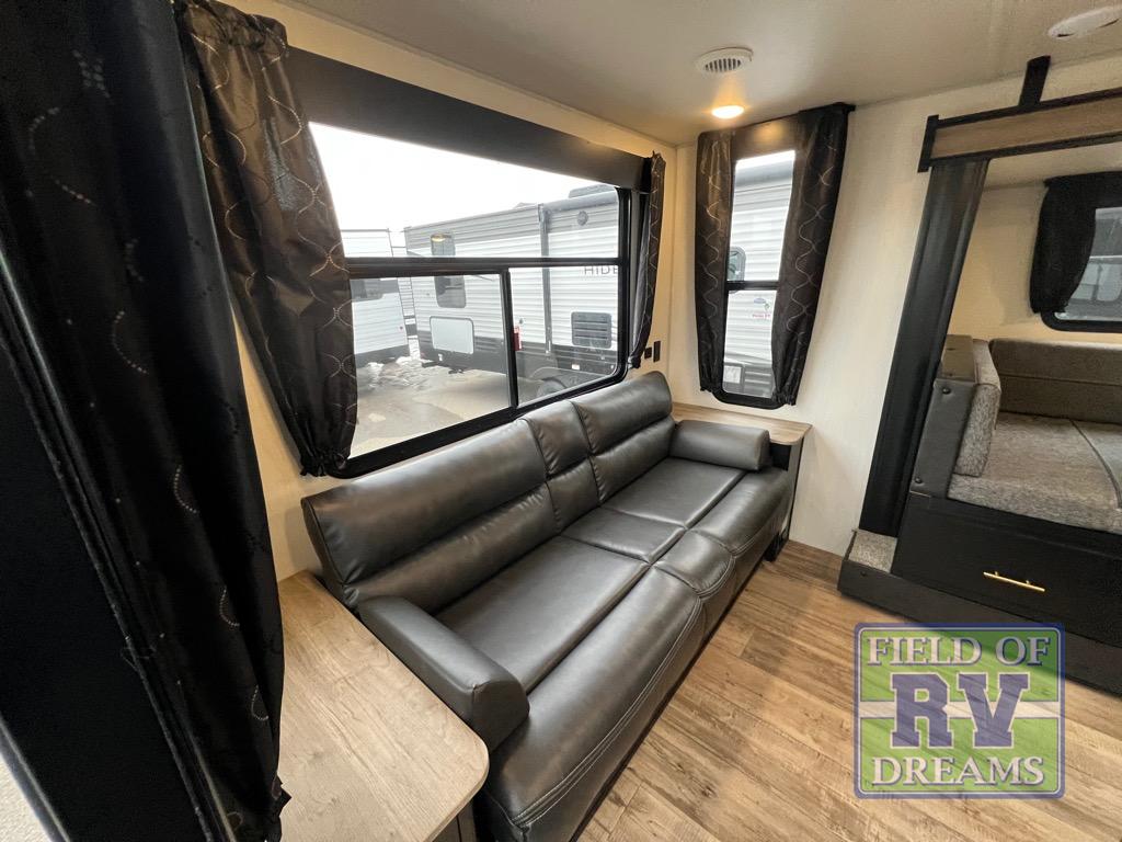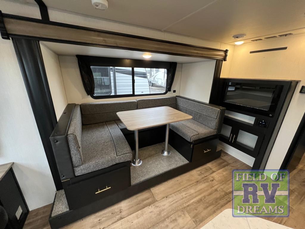 This Cherokee Grey Wolf travel trailer is perfect for your small family and will leave you planning your next outing before you are back from your current weekend away! You will find all of the comforts you need with plenty of livable space including a U-shaped dinette slide. There is also a sofa for more seating when company arrives, and there are end tables on either side to prevent spills. A spacious walk-through bath leads to a front private bedroom where you will enjoy a great night's rest on a comfortable queen-size bed. You will find ample storage for clothing in the wardrobes that are above handy nightstands for your personal things. There are even lights mounted above the bed on each side which makes it easy to read a couple of chapters before drifting off to sleep.