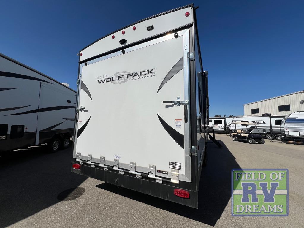 Run with the pack in any one of these Forest River Cherokee Wolf Pack toy haulers! They are affordable and versatile with a 102" widebody design to pack in all of the necessary features for a great adventure with your family and toys. The grey high gloss gel exterior will turn heads on the highway and the LED interior/exterior lights will make life easier. An outside shower with hot and cold water helps to keep the mud outside where it belongs. With an external 30 gallon fuel station, you won't have to worry about your toys being low on fuel. The Platinum package adds extra conveniences like a ramp door patio deck railing system, a Happijac bed lift system, and an industrial rubber garage floor on enclosed garage models. Come find the perfect model for you today!