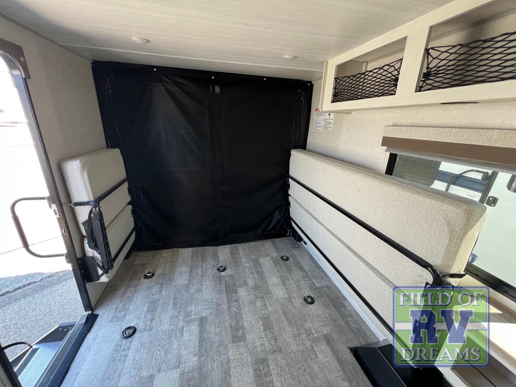 You'll be all set for your next adventure with this No Boundaries toy hauler! Not only do you have plenty of space to store your four-wheelers and dirt bikes in the 10' 7" garage, but you also have space to sleep on a queen-size bed, space to clean up with the full bathroom, space to create meals with the kitchen amenities, and space to relax with the flip-up sofa. If you want more space to spread out while you relax, just head outside to your camp chairs and pull out the 16' awning. There is also storage space on this trailer with the pantry, refrigerator, overhead cabinets, and exterior pass-through storage. Add the optional Un-Plugged package to take your camping experience to a whole new level. Some features included in this package are 600 watts of solar, premium Lithium-ion batteries, a 3,000 watt inverter charger, a high-efficiency A/C, and more.