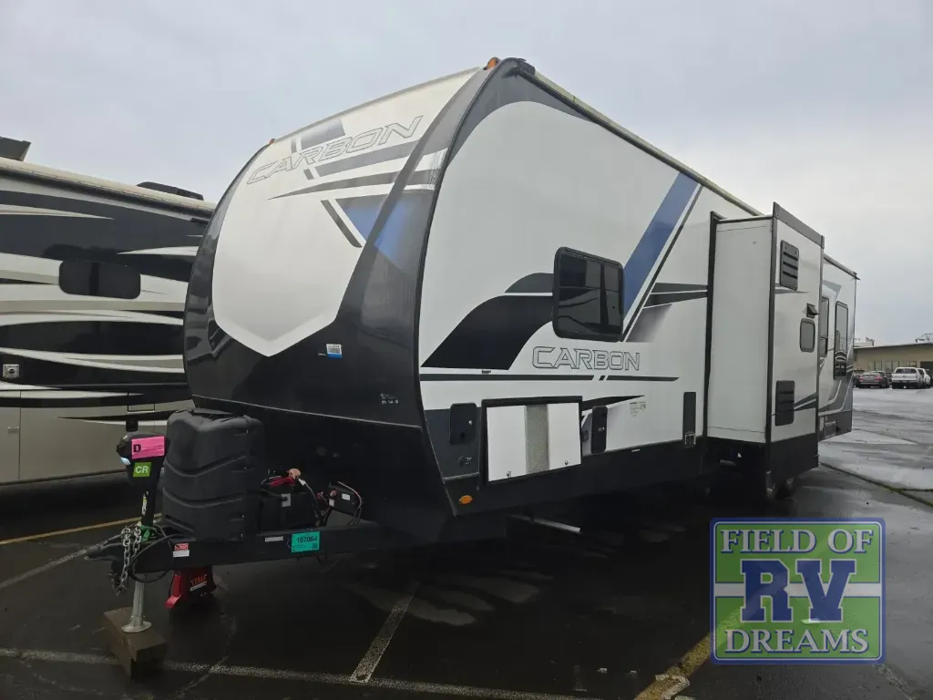 With any Keystone Carbon toy hauler, you will receive rugged construction from the industry-leading patented 5,000 lb. capacity tie-downs that are welded to the frame to increase hauling safety and security plus the Dyna Span floor decking in the garage. There is off-grid camping with the Solar Flex 200 which delivers an affordable, high-quality RV solar energy system, and a comfortable interior with the exclusive Omni-Chill technology that offers high-efficiency air conditioning and maximum cooling. Other unexpected conveniences include wireless charging without chunky cables, soft-close hardwood cabinetry allowing you to sneak snacks without others noticing, and designer style flooring throughout for easy care and a stylish look. And each Carbon includes Keystone Exclusives! Now all you have to do is take charge of how you camp in a toy hauler fifth wheel or travel trailer!