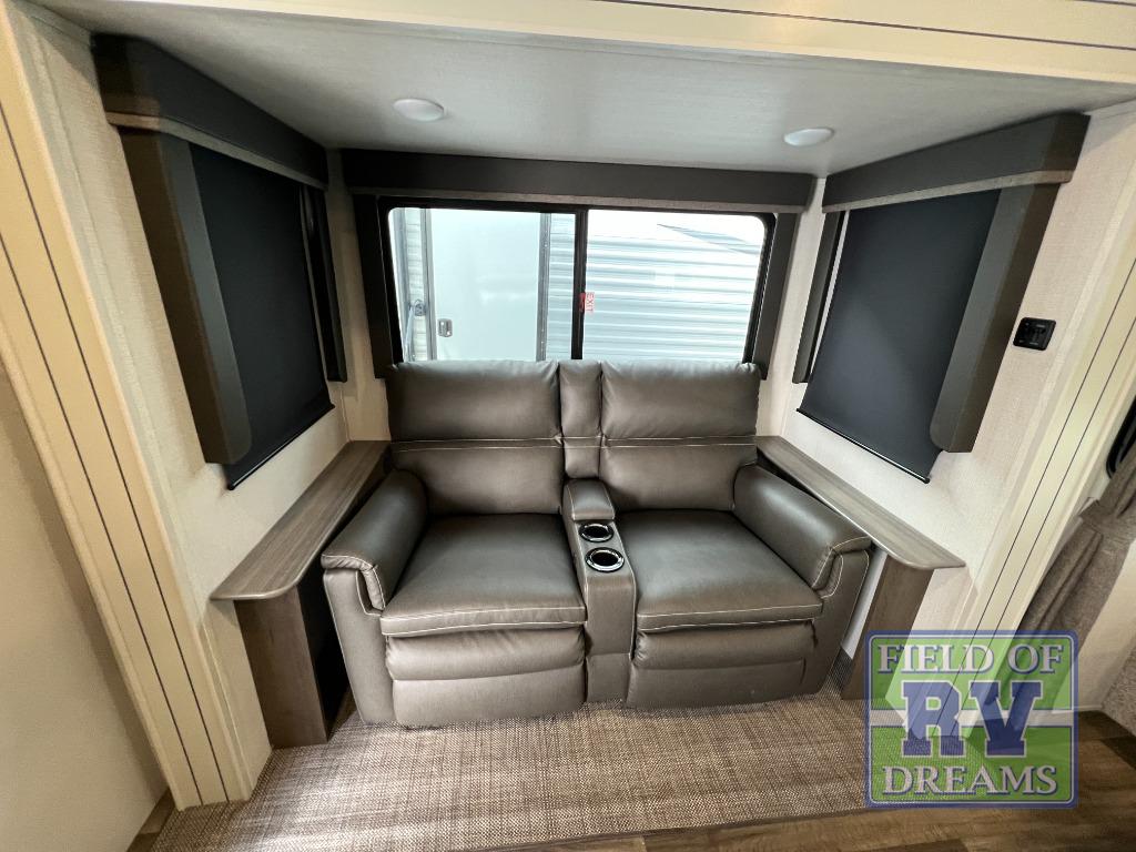 Imagine waking up from your own king bed to enjoy a hike, a bike ride, or a relaxing time outside under the 16' power awning while you wait for your spouse to wake up. With this Cougar Half-Ton travel trailer, you can make breakfast inside with full amenities and eat at the U-shaped dinette while looking out at the views. You will be able to get cleaned up in the full bathroom without having to wait your turn for the public facilities. Plus, there is a privacy curtain for the bedroom so that you have an additional place to get ready, and the bar top gives you extra room to sit down with a hot meal.