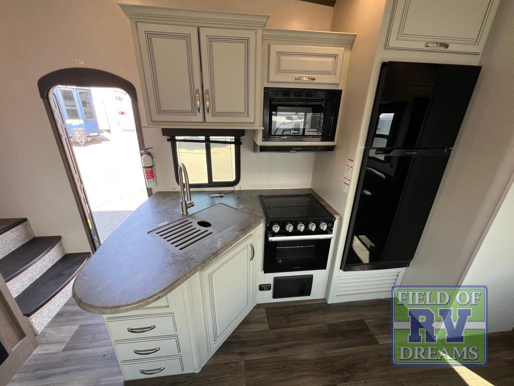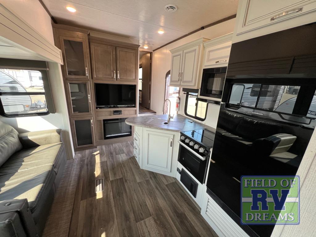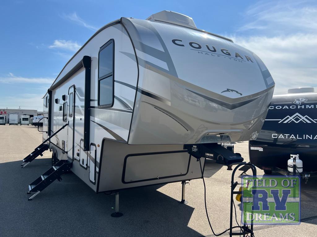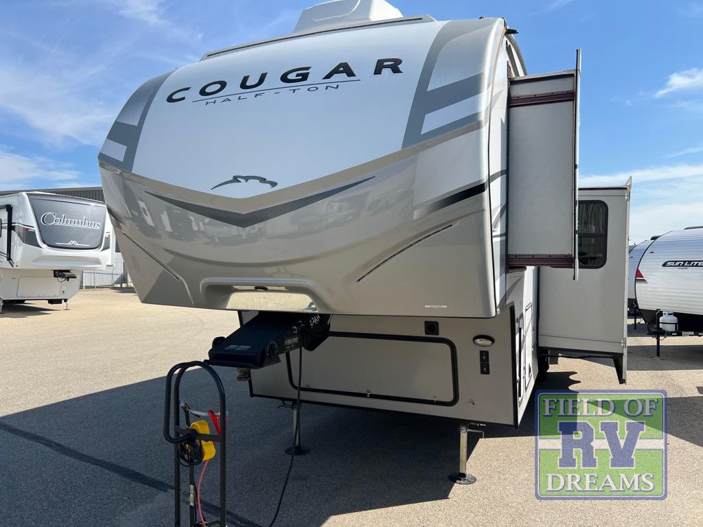 You won't have any trouble convincing your friends or family to join you on an adventure with this Cougar Half-Ton fifth wheel! Since this unit has both a full and a half bathroom, it will be easy for everyone to get ready in the morning, and the 21" Furrion range will allow you to whip up a full batch of pancakes for your guests. Store any leftovers in the 10.4 cu. ft.12V refrigerator before heading out on your next exciting expedition. If you need your backpacks and hiking gear, you can grab them from the exterior pass-through storage, and you can create a cozy living area by adding the optional fireplace.