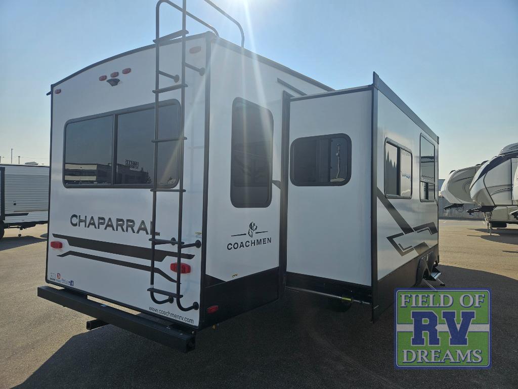 Comfort, convenience, and an easy haul is what you will find with each one of these Coachmen RV Chaparral Lite fifth wheels! Their Tri-Tex powder coated frame technology is up to 5X more weather resistant, and the dual-sided Azdel composite sidewall panels are ultra durable. The Road Armor suspension by Trail Air comes with heavy duty shackles and wet bolts so you can be sure it will hold up through every adventure, and you might want to add the exterior back-up and sideview camera prep for easy parking. You will feel right at home inside with slow rise blackout roller night shades, an upgraded Carbon and Walnut entertainment center, a modern high-rise kitchen faucet, and many more comforts! The exterior is just as inviting with its electric awning with LED lights, Solid Step entry steps, and pass-through storage for all your gear!